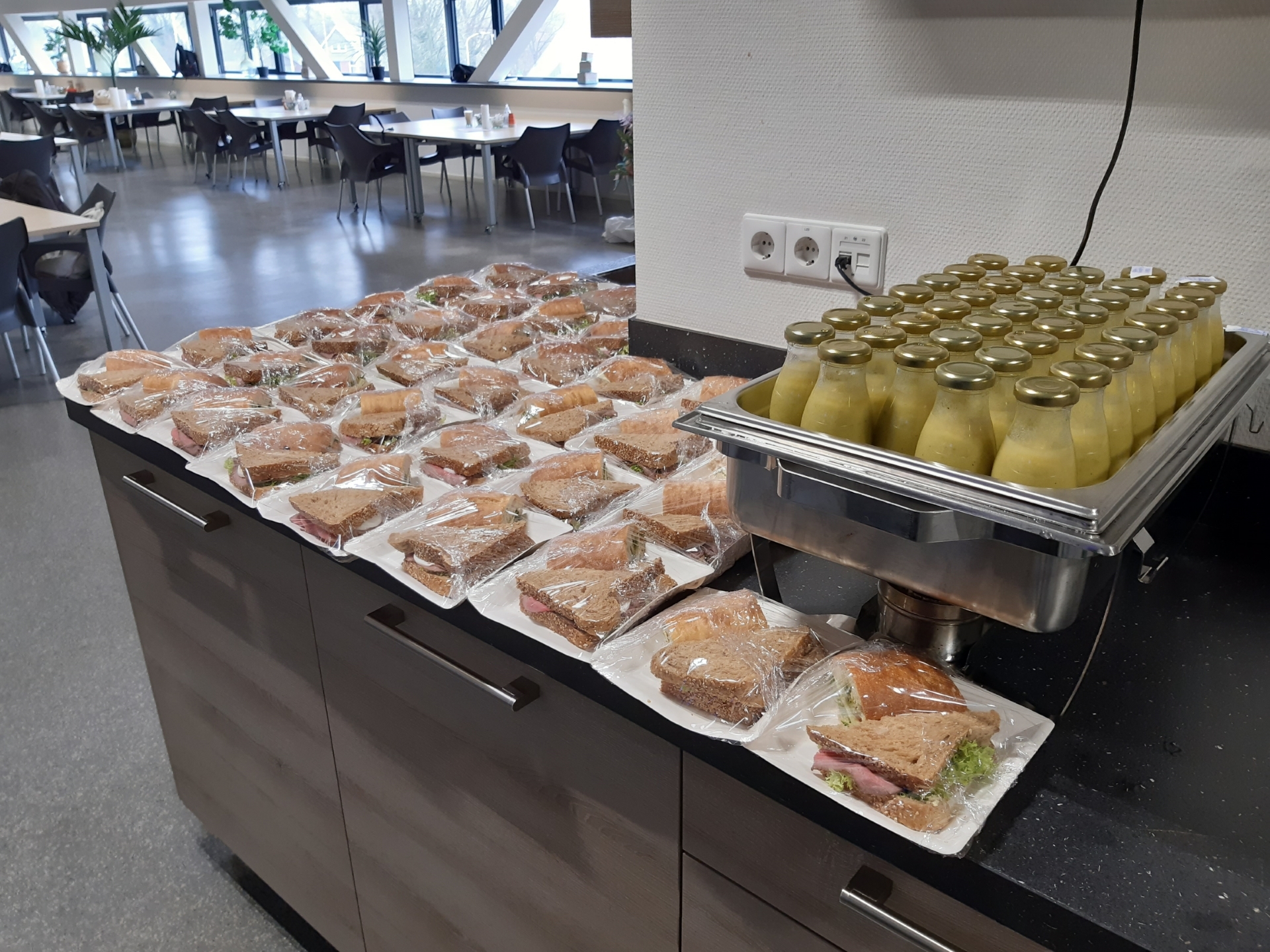 Eenmaal per maand wordt er op woensdag bij logistiek een lunch verzorgd (1 x in even week, andere keer in oneven week in verband met ploegen).